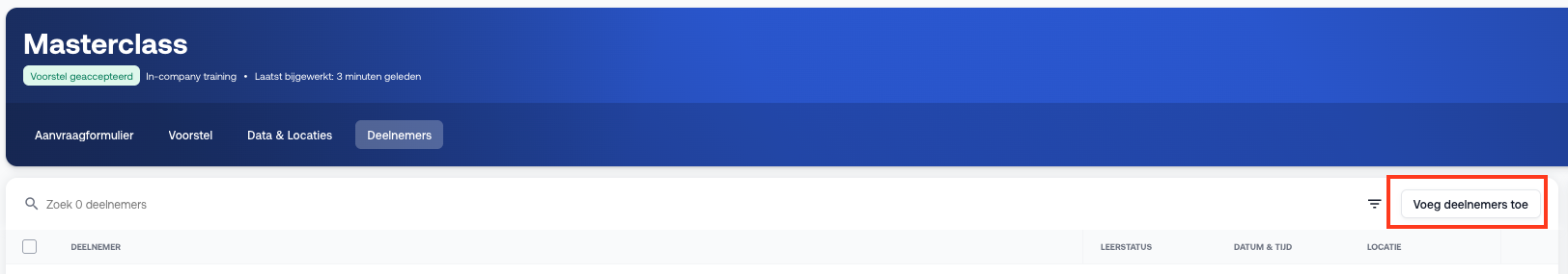 Na volledige goedkeuring kun je deelnemers toevoegen onder het tabje ‘Deelnemers’: