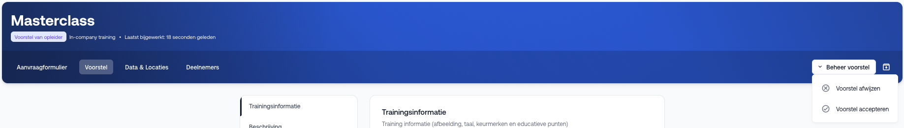 De opleider maakt een voorstel en stuurt dit naar de contactpersoon.